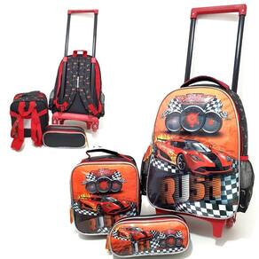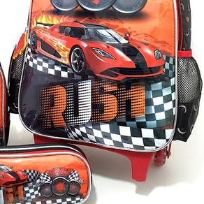 Um Kit Escolar Para Os Meninos que amam carros e corrida e que cabe todo o material. Confeccionada em poliéster super resistente, próprio e resistente para mochilas infantis, com acabamentos e reforços por toda a mochila.