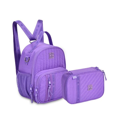Especificações: - Marca: Clio Style - Tamanho Estojo :(A x P x L ) 22cm x 6cm x 16cm - Tamanho Lancheira :(A x P x L ) 27cm x 12cm x 20cm - Material:Crinkle com Matelassê