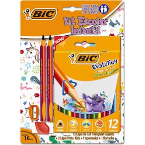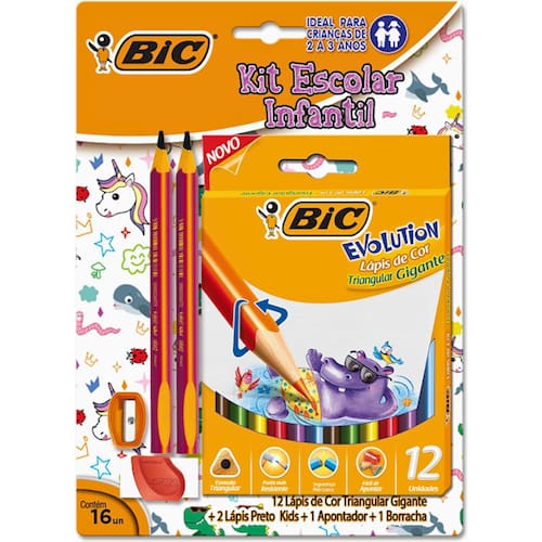 Kit Lapis de cor Triangular + 2 Lapis Grafite Triang + Borracha + Apontador