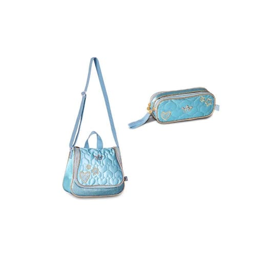 Kit Escolar Meninas Love Verde-Água Lancheira + Estojo Duplo