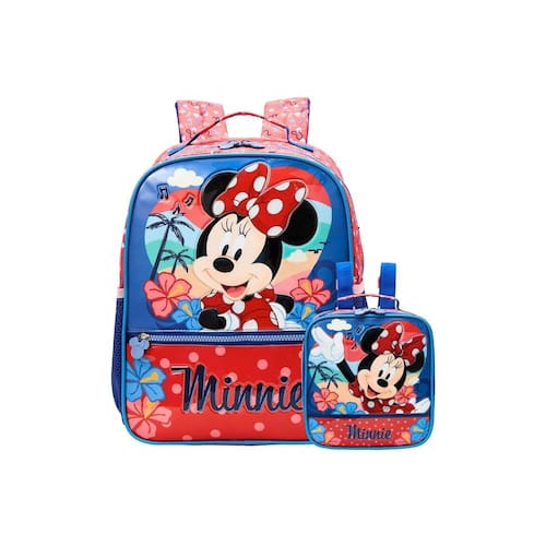 Kit Escolar Minnie Mouse Mochila de Costas G + Lancheira Térmica A Minnie te espera para muitas aventuras escolares O kit escolar da Minnie Mouse é perfeito para as pequenas aventureiras. Com um design exclusivo e funcional, ele é ideal para levar todos os materiais escolares com facilidade e estilo. Principais características da mochila: Design exclusivo: Estampa da Minnie, a personagem mais famosa da Disney, com detalhes encantadores. Fechamento por zíper: Facilita o acesso aos compartimentos. Alças de costas reguláveis e acolchoadas: Conforto e versatilidade para carregar da forma que preferir. Dois compartimentos: Espaço amplo para organizar livros, cadernos e outros materiais. Bolsos laterais: Ideal para guardar garrafinhas ou outros itens pequenos. Principais características da lancheira: Design exclusivo: Estampa da Minnie e com detalhes encantadores. Fechamento por zíper: Facilita o acesso ao compartimento principal. Alças de mão e costas: Versatilidade para carregar da forma que preferir. Faixa de tecido adesivo: Permite acoplar a lancheira na mochila. Isolamento térmico: Mantém os alimentos frescos por mais tempo.