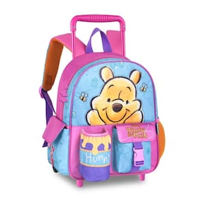 Kit Escolar Mochila Carrinho Com Estojo Duplo Ursinho Pooh