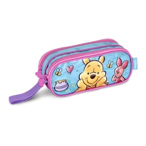 O Kit Mochila de Carrinho + Estojo Duplo da linha Pooh é perfeito para deixar a volta às aulas mais divertida e organizada