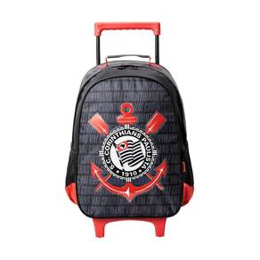 Mochila Rodinha G Escolar Corinthians: Possui RODAS RESISTENTES Confeccionada em Poliéster e PVC Possui 1 compartimentos espaçosos Fechamento em zíper REFORÇADO Dois bolsos laterais telados pra garrafa Regulador de tamanho da alça na parte traseira Puxadores personalizados Medidas: Altura: 40 cm Largura: 30 cm Profundidade: 15 cm