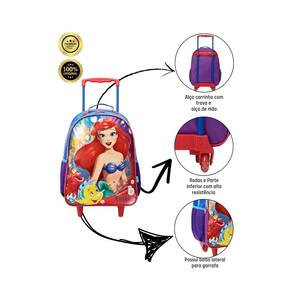 Kit Escolar 2 Peças Ariel Pequena Sereia O kit perfeito para as pequenas sereias Mergulhe no mundo mágico da Ariel com este kit escolar completo e cheio de encanto Ideal para levar tudo o que sua filha precisa para a escola, com a mochila de rodinha espaçosa e a lancheira prática, todos personalizados com a imagem da Pequena Sereia. Principais características: Design exclusivo da Pequena Sereia: Com a Ariel em destaque, esse kit vai encantar as pequenas fãs. Mochila de rodinha: Facilita o transporte dos materiais escolares e proporciona mais conforto para a criança. Ajuste de altura da alça para facilitar o transporte. Lancheira: Com forro térmico é ideal para guardar lanches e bebidas conservando a temperatura, com alça regulável para maior conforto. Zíper resistente: Garante maior durabilidade e segurança em todos os itens. Bolsos laterais: Ideais para guardar garrafinhas ou outros objetos pequenos. Alça de mão e de costas: Versatilidade para carregar a lancheira da forma mais confortável. Detalhes personalizados: Tornam o kit ainda mais especial e único. Por que escolher este kit Completo e prático: Tudo o que sua filha precisa para a escola em um único kit. Design exclusivo: A Pequena Sereia é a paixão de muitas meninas e este kit traz a magia para a escola. Conforto e praticidade: Rodinhas, alças e compartimentos garantem o conforto e a organização. Durabilidade: Materiais de alta qualidade garantem longa vida útil. Perfeito para presente: Ideal para aniversários, volta às aulas ou qualquer outra ocasião especial. Em resumo, este kit da Pequena Sereia é a escolha perfeita para as pequenas fãs da Disney. Com ele, a hora de ir para a escola será ainda mais divertida e cheia de magia Ideal para: Meninas fãs da Ariel: Um presente perfeito para encantar as pequenas princesas. Dia a dia escolar: Organiza os materiais escolares e torna o caminho para a escola mais divertido. Viagens e passeios: Ideal para transportar brinquedos e lanches.