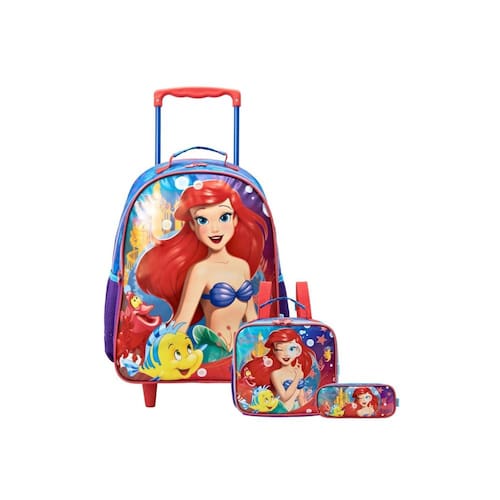 Kit Escolar 3 Peças Ariel Pequena Sereia Completo O kit perfeito para as pequenas sereias Mergulhe no mundo mágico da Ariel com este kit escolar completo e cheio de encanto Ideal para levar tudo o que sua filha precisa para a escola, com a mochila de rodinha espaçosa, a lancheira prática e o estojo duplo, todos personalizados com a imagem da Pequena Sereia. Principais características: Design exclusivo da Pequena Sereia: Com a Ariel em destaque, esse kit vai encantar as pequenas fãs. Mochila de rodinha: Facilita o transporte dos materiais escolares e proporciona mais conforto para a criança. Ajuste de altura da alça para facilitar o transporte. Lancheira: Com forro térmico é ideal para guardar lanches e bebidas conservando a temperatura, com alça regulável para maior conforto. Estojo duplo: Espaço suficiente para organizar lápis, canetas e outros materiais. Zíper resistente: Garante maior durabilidade e segurança em todos os itens. Bolsos laterais: Ideais para guardar garrafinhas ou outros objetos pequenos. Alça de mão e de costas: Versatilidade para carregar a lancheira da forma mais confortável. Detalhes personalizados: Tornam o kit ainda mais especial e único. Por que escolher este kit Completo e prático: Tudo o que sua filha precisa para a escola em um único kit. Design exclusivo: A Pequena Sereia é a paixão de muitas meninas e este kit traz a magia para a escola. Conforto e praticidade: Rodinhas, alças e compartimentos garantem o conforto e a organização. Durabilidade: Materiais de alta qualidade garantem longa vida útil. Perfeito para presente: Ideal para aniversários, volta às aulas ou qualquer outra ocasião especial. Em resumo, este kit da Pequena Sereia é a escolha perfeita para as pequenas fãs da Disney. Com ele, a hora de ir para a escola será ainda mais divertida e cheia de magia Ideal para: Meninas fãs da Ariel: Um presente perfeito para encantar as pequenas princesas. Dia a dia escolar: Organiza os materiais escolares e torna o caminho para a escola mais divertido. Viagens e passeios: Ideal para transportar brinquedos e lanches.