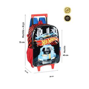 Kit Escolar Mochila De Rodinhas E Lancheira Hot Wheels-Preto Esse kit incrível é perfeita para os pequenos amantes de velocidade Com um design cheio de estilo e detalhes que vão encantar qualquer fã de carros, ela é ideal para o dia a dia na escola ou em aventuras radicais. Características: mochila Estampa com carros turbinados: Os gráficos vibrantes e cheios de ação dos carros Hot Wheels vão deixar qualquer criança animada para a aventura.
