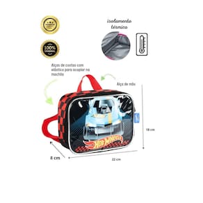 Encaixe para mochila de rodinhas: Sistema prático e seguro que permite acoplar a lancheira na maioria das mochilas de rodinhas. Design moderno e esportivo: A estampa da Hot Wheels traz um toque de velocidade e aventura para a lancheira. Marca: Não Informado