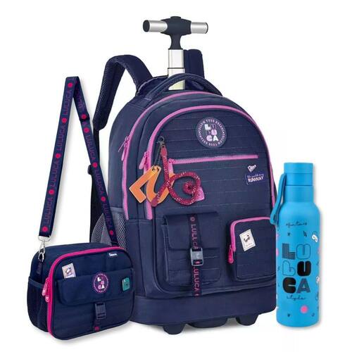Kit Mochila de Carrinho Luluca LU24634 + Lancheira Térmica LU24637 + Garrafa Térmica LU1006: Estilo, Praticidade e Qualidade em Cada Detalhe Agora o kit está ainda mais completo com a Garrafa Térmica LU1006, de 500ml. Feita com aço inoxidável e plástico PP, ela mantém a bebida quentinha ou gelada por até 8 horas. Uma escolha prática e estilosa para acompanhar as aventuras diárias das crianças, combinando com toda a exclusividade da coleção Luluca Se você ou sua filha são fãs da Luluca e buscam uma mochila que seja um reflexo perfeito de estilo, organização e funcionalidade, a Mochila LU24634 é a escolha ideal Com design encantador e qualidade premium, ela oferece a versatilidade que você precisa para o dia a dia escolar ou atividades diversas. A Mochila LU24634 pode ser Utilizado tanto no carrinho quanto nas costas, adaptando-se a qualquer necessidade com conforto e praticidade. Para uso no carrinho, suas 2 rodinhas traseiras e base de apoio frontal garantem estabilidade e movimentação fácil. Além disso, o bolso para guardar as alças mantém tudo organizado. Ao usá-la nas costas, suas alças ajustáveis e confortáveis proporcionam leveza e comodidade, enquanto a proteção inteligente cobre as rodinhas para evitar sujeira nas roupas. Há ainda um bolso exclusivo para guardar o puxador metálico quando não estiver em uso. Seu interior é um exemplo de organização e funcionalidade. O compartimento principal amplo inclui espaço acolchoado especial para notebooks, mantendo seus itens mais valiosos protegidos. Os dois compartimentos frontais com zíper são ideais para itens essenciais, enquanto dois bolsos adicionais - um com zíper e outro com botão magnético - oferecem ainda mais opções para guardar tudo o que você precisa. E, claro, os bolsos laterais telados são perfeitos para garrafas ou pequenos objetos de fácil acesso. O zíper bicolor e o chaveiro incrível de corda e outros de acrílico completam o charme deste modelo que é simplesmente irresistível. Confeccionada em nylon com matelassê, a mochila une sofisticação e durabilidade. Seus cadarços logados acetinados, pins de metal e etiqueta de borracha são detalhes únicos que destacam sua autenticidade e estilo exclusivo. Dimensões aproximadas: 48x35x19 cm. Lancheira LU24637 Estilo e funcionalidade em um único item. Com design encantador, é perfeita para conservar os alimentos organizados e fresquinhos. Compartimento principal térmico, garantindo que os alimentos fiquem na temperatura ideal. Bolso frontal com fechamento por fivela moderna e lateral telado. Alça de ombro ajustável para conforto no transporte. Dimensões aproximadas: 20x24x14 cm. Marca: Não Informado Ean: 7795028087999