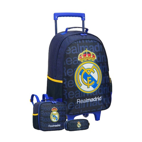 Kit Escolar Mochila Rodinha + Lancheira Térmica + Estojo Duplo Real Madrid