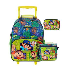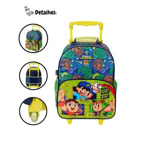 Mochila de Rodas Escolar Família Arqueira Produzido em poliéster 1 divisão grande 1 bolso de redinha Ziperes com puxadores personalizados Estampa estilizada