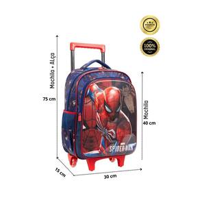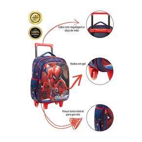 Kit Escolar Homem Aranha Spider Man Mochila de Rodinha+Lancheira Jogue como um super-herói Mochila Rodinha: Possui RODAS RESISTENTES Confeccionada em Poliéster e PVC Frente com detalhes metalizados Possui 2 compartimentos espaçosos Fechamento em zíper Dois bolsos laterais telados Etiqueta de identificação na parte traseira Puxadores personalizados Medidas: Altura: 40 cm com a alça abaixada e 75 com a alça levantada Largura: 30 cm Profundidade: 15 cm Lancheira Térmica Escolar Confeccionada em Poliéster Forro térmico Possui Alça de ombro e de mão dupla Etiqueta de identificação na parte traseira Medidas: Altura: 25 cm Largura: 22 cm Profundidade: 15 cm