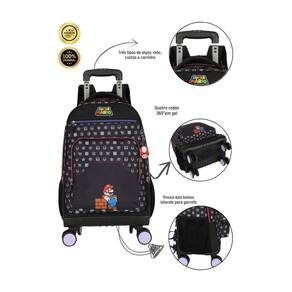 Kit escolar mochila 4 rodas 360º+lancheira térmica super mario mochila com rodas: Confeccionada em poliéster Fechamento em zíper Puxadores personalizados Compartimentos espaçosos 2 bolsos laterais para garrafa Possui rodas e alças de costas reguláveis e alça de mão Design exclusivo Medidas altura: 50 cm largura: 20 cm comprimento: 30 cm Produzido em poliéster Possui alças de costas Material interno térmico Ziperes com puxadores personalizados Estampa estilizada Não acompanha potinho e garrafinha Dimensões: largura: 22 altura: 20 profundidade: 8cm Cuidados: - guarde em um local seco e arejado evitando locais úmidos. - evite colocar excesso de peso no produto para não forçar os zíperes e costuras. - proteja os objetos cortantes e/ou pontiagudos evitando o contato direto com o produto. - evitar altas temperaturas. - cores claras poderão manchar quando em contato com outros objetos ou roupas de cores pigmentadas.