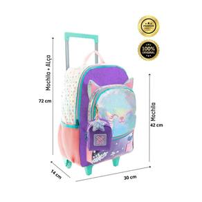 Kit Escolar 3 Peças Gatinha Glitter Holográfica Brilhe na escola com o kit da gatinha holográfica Chegou a hora de arrasar nas aulas com o kit escolar mais fashion e divertido A mochila com rodinhas, a lancheira e o estojo box, todos com detalhes holográficos e glitter, vão deixar qualquer menina apaixonada. Com design moderno e funcionalidades incríveis, este kit é perfeito para as adolescentes que amam a moda e a praticidade. Principais características: Design holográfico e metalizado: Um show de brilho e estilo para a sua pequena fashionista. Mochila com rodinhas resistentes e triplo compartimento: Ideal para organizar todos os materiais escolares. Lancheira térmica: Mantém os alimentos e bebidas na temperatura ideal por mais tempo. Estojo box: Com divisórias e mini bolsinha para organizar tudo com estilo. Zíper resistente: Garante maior durabilidade e segurança em todos os itens. Bolsos laterais: Ideais para guardar garrafinhas ou outros objetos pequenos. Alça reguláveis: Proporcionam conforto e ajuste perfeito para as costas. Materiais de alta qualidade: Garantem maior durabilidade e resistência. Por que escolher este kit Completo e prático: Tudo o que sua filha precisa para a escola em um único kit. Design exclusivo e fashion: A gatinha holográfica é a sensação do momento e este kit traz o estilo para a escola. Conforto e praticidade: Rodinhas resistentes, alças acolchoadas e compartimentos garantem o conforto e a organização. Durabilidade: Materiais de alta qualidade garantem longa vida útil. Perfeito para presente: Ideal para aniversários, volta às aulas ou qualquer outra ocasião especial. Em resumo, este kit gatinha holográfica é a escolha perfeita para as meninas que amam a moda e a praticidade. Com ele, a hora de ir para a escola será ainda mais divertida e cheia de estilo Ideal para: Meninas que amam gatinhos: Um presente perfeito para encantar as pequenas fashionistas. Dia a dia escolar: Ideal para levar os materiais escolares para a escola com estilo e conforto. Viagens e passeios: Perfeita para transportar os pertences em viagens curtas.