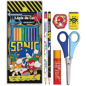 Kit Escolar Sonic 12 Lápis de Cores + 6 Peças - Leonora