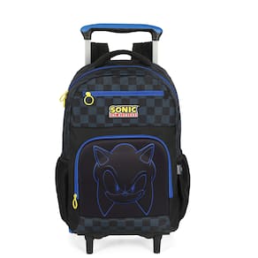 Mochila de Rodinha Sonic Estampa exclusiva com o rosto do Sonic em detalhe azul neon. Estrutura reforçada com rodinhas resistentes e alça retrátil para facilitar o transporte. Bolsos laterais em tela + amplo espaço interno. Puxadores de zíper personalizados em formato de anel dourado.