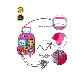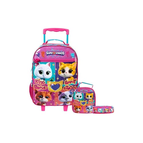Kit Escolar Super Gatinhos Mochila de Rodas + Lancheira Térmica + Estojo Mochila de Rodinha: Confeccionada em Poliéster Fechamento em zíper Compartimentos espaçosos 2 bolsos laterais para garrafa Possui RODAS e ALÇA DE MÃO Design exclusivo Medidas aproximadas: Altura: 40 cm Largura: 15 cm Comprimento: 30 cm