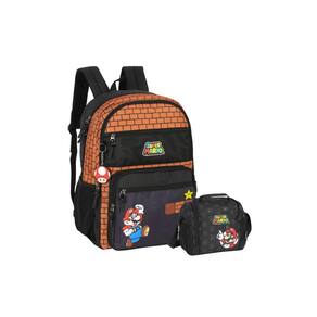Kit Escolar Super Mario Mochila Costa + Lancheira. - Marrom