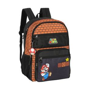 Design moderno e divertido com a cara do Super Mario Bolso lateral perfeito para garrafinhas de água. Alças ajustáveis para maior conforto. Amplo espaço interno para guardar livros, cadernos e outros materiais.