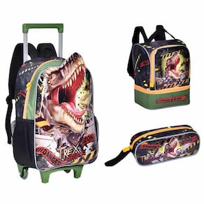 O estojo T-Rex Attack é perfeito para organizar lápis, canetas e materiais escolares, mantendo tudo protegido e de fácil acesso. A lancheira térmica mantém os alimentos frescos por mais tempo, enquanto a mochila de rodas facilita o transporte dos materiais mais pesados.
