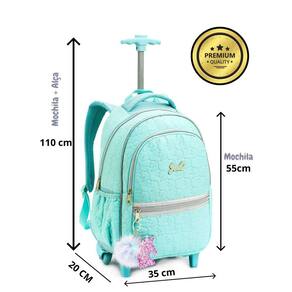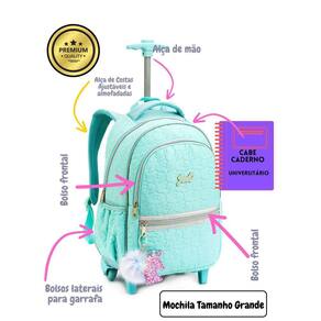 Produzida em poliéster; Possui alças para costas macias e confortáveis; Possui 2 bolsos laterais, 2 frontais e 1 divisão grande; Zíperes com puxadores reforçados; Rodinhas produzidas em pvc gel de altíssima resistência; Puxador do carrinho produzida em alumínio e pvc; Estampa estilizada; Alça para mão;