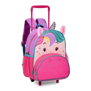 Mochila Unicórnio de Carrinho: Com um compartimento principal espaçoso, a mochila oferece o espaço ideal para organizar todos os materiais escolares, roupinhas e a lancheira. Na parte frontal, um bolso adicional permite guardar itens menores, garantindo fácil acesso. As laterais possuem bolsos telados perfeitos para garrafinhas ou mamadeiras. As alças ajustáveis e confortáveis possibilitam o uso nas costas, mas também é possível deslizar a mochila com suavidade graças às suas duas rodinhas traseiras e base de apoio frontal. A estampa exclusiva e moderna com chifrinho e orelhinhas proeminentes em pelúcia adiciona um toque de charme único que só essa mochila possui.