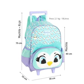 Mochila com Rodas: Confeccionada em Poliéster Fechamento em zíper Puxadores personalizados Compartimentos espaçosos 2 bolsos laterais para garrafa Possui RODAS e ALÇA DE MÃO Design exclusivo Etiqueta de identificação na parte traseira Medidas aproximadas: Altura Mochila+Alça : 75 cm Altura Mochila : 40 cm Largura: 15 cm Comprimento: 30 cm