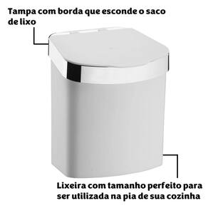 Fabricada em plástico e com tamanho compacto, a Lixeira é ideal para ser deixada sobre a pia ou a bancada. Sua tampa removível permite deixar o saquinho de lixo fixo e não aparente.