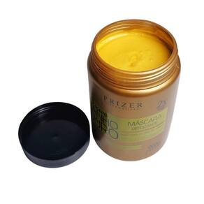 MÁSCARA 900GR: Com silicones especiais e óleo de Argan. Forma um poderoso filme nos fios, capaz de recuperar a elasticidade, flexibilidade e resistência dos fios e com um blend de pigmentos dourados que em conjunto com os ativos proporciona um glamuroso brilho.