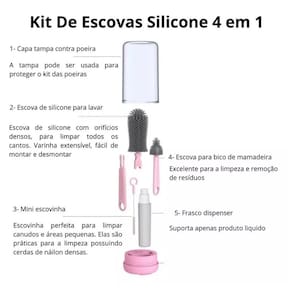 Versatilidade 4 em 1: Inclui escovas de diferentes tamanhos e formatos, permitindo a limpeza completa de diversos itens, desde mamadeiras até copos e garrafas.
