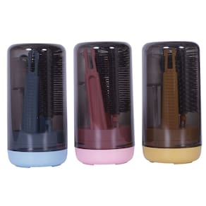 Design 6 em 1: Tudo o que você precisa em um único estojo compacto que serve como suporte e secador.