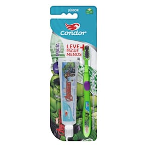 Kit Escova Macia + Gel Dental Com Flúor 50G Morango Avengers Condor Júnior Leve Mais Pague Menos