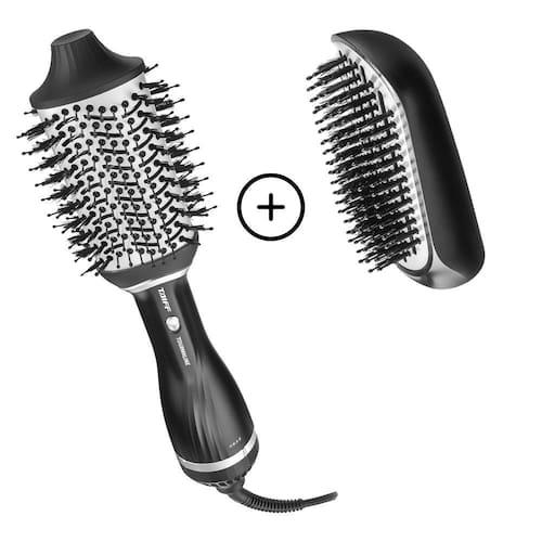 Perfeito para cabelos médios e longos: proporciona volume e modelagem. Cerdas de nylon com altura dupla: melhor tração e desembaraço. Design ergonômico: facilita o manuseio.