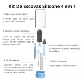 Versatilidade 4 em 1: Inclui escovas de diferentes tamanhos e formatos, permitindo a limpeza completa de diversos itens, desde mamadeiras até copos e garrafas.