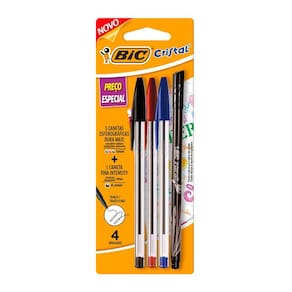 Torne sua escrita e anotações mais completas com este Kit BIC que conta com 3 Canetas Esferográficas de escrita média e 1 Caneta Hidrográfica de escrita Fina. A adição de destaques e detalhes diferenciados da Caneta Hidrográfica se junta à durabilidade de escrita de até 2km das Canetas Esferográficas Dura+, tornando esse Kit uma ótima pedida para quem está sempre escrevendo. Você pode diversificar sua escrita com as cores clássicas (preto, vermelho e azul) oferecidas pelas Canetas Esferográficas e pelo destaque em preto da Caneta Hidrográfica.}