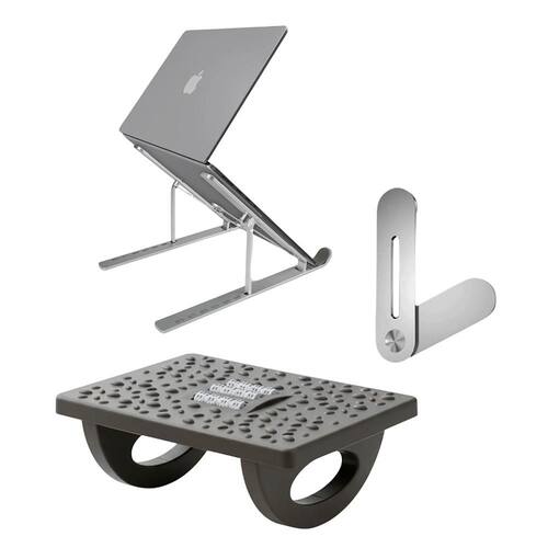 kit home office, kit escritório, kit escritório ergonômico, kit home office ergonômico, acessórios para escritório, acessórios para home office, apoio ergonômico para pés, suporte para notebook, limpeza de eletrônicos, limpa telas, extensão elétrica, organização de escritório, conforto para trabalho, estação de trabalho, kit produtividade