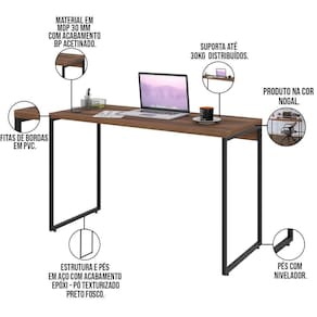 Com o Kit Escritório Estante Areta 3 Prateleiras com Mesa Industrial Aspen 120cm C01 Nogal - Lyam Decor, o conceito industrial ficará evidente no seu ambiente, tornando o mesmo muito mais moderno, sofisticado e organizado, garantindo isso com 03 prateleiras que deixam tudo prático e funcional. Uma característica muito forte dos móveis industriais é a união do tubular de estrutura exposta com a madeira, que dão todo o charme para agregar no estilo que está entre os mais buscados no ramo de arquitetura e decoração.
