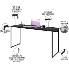 Com o Kit Escritório Estante Areta 3 Prateleiras com Mesa Industrial Aspen 150cm C01 Onix - Lyam Decor, o conceito industrial ficará evidente no seu ambiente, tornando o mesmo muito mais moderno, sofisticado e organizado, garantindo isso com 03 prateleiras que deixam tudo prático e funcional. Uma característica muito forte dos móveis industriais é a união do tubular de estrutura exposta com a madeira, que dão todo o charme para agregar no estilo que está entre os mais buscados no ramo de arquitetura e decoração.