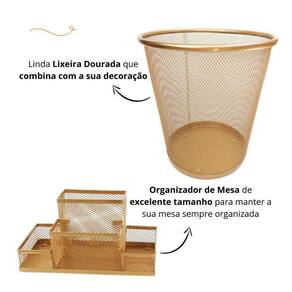 Kit escritório lixeira organizador de mesa bandeja organizadora porta caneta dourado Kit escritório dourado
