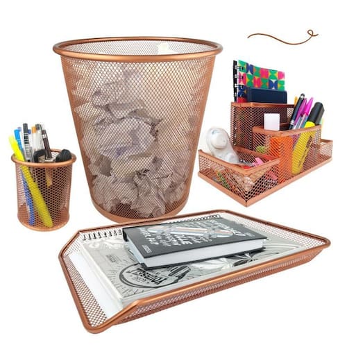 Kit escritório lixeira organizador de mesa bandeja organizadora porta caneta rose gold Kit organizadores de escritório rose gold