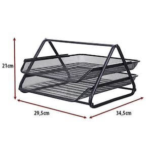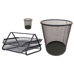 Kit escritório organizador bandeja lixeira porta caneta preto Kit escritório preto com 3 unidades Para quem gosta de ter tudo sempre à mão, com agilidade e praticidade. Kit completo de organizador, porta canetas e lixeira de escritório é ideal para você.Com eles, você vai evitar a perda de tempo procurando os itens de que precisa e que usa com frequência. Tudo estará a sua mão. Kit escritório preto composto por:- 01 porta caneta, lápis preto - 01 lixeira aramada preto- 01 bandeja dupla de mesa escritório para documentos Cor: pretoMaterial: metal - porta caneta, lápis tamanho: 10x9cm altura x diâmetro - lixeira tamanho: 27x23,5x18,5cm altura x diâmetro da boca x diâmetro da base - bandeja dupla escritório tamanho: 21x29,5x34,5cm altura x largura x comprimento Marca: Markys Store