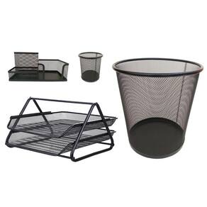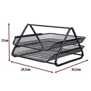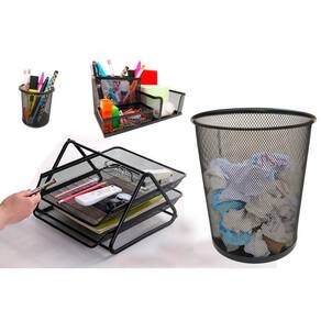 Kit escritório organizador bandeja lixeira porta lápis lixo preto Kit escritório preto com 4 unidades Para quem gosta de ter tudo sempre à mão, com agilidade e praticidade. Kit completo de organizador, porta canetas e lixeira de escritório é ideal para você.Com eles, você vai evitar a perda de tempo procurando os itens de que precisa e que usa com frequência. Tudo estará a sua mão. Kit escritório preto composto por:- 01 organizador de mesa escritório preto com 3 partições - 01 porta caneta, lápis preto - 01 lixeira aramada preto- 01 bandeja dupla de mesa escritório para documentos Cor: pretoMaterial: metal - organizador de mesa escritório tamanho: 20x10x10cm largura x altura x comprimento - porta caneta, lápis tamanho: 10x9cm altura x diâmetro - lixeira tamanho: 27x23,5x18,5cm altura x diâmetro da boca x diâmetro da base - bandeja dupla escritório tamanho: 21x29,5x34,5cm altura x largura x comprimento Marca: Markys Store