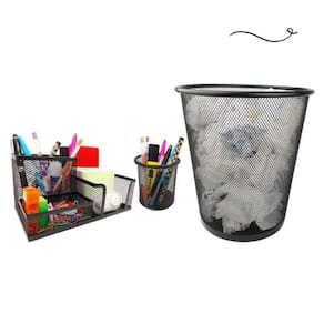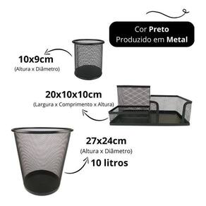 Kit escritório organizador de mesa lixeira porta caneta lápis preto Kit escritório organizador de mesa, lixeira e porta caneta lápis preto