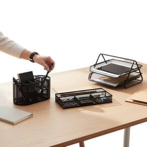 . Vantagens: Conjunto completo para organização de mesa e escritório Estrutura metálica durável e de fácil limpeza Mantém documentos, acessórios e objetos sempre em ordem Design funcional e moderno