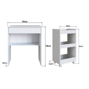 Este conjunto para escritório inclui uma Escrivaninha compacta com gaveta e um Armário para Livros com 3 prateleiras e 4 rodinhas, ideal para organizar seu espaço com estilo e praticidade. Perfeito para o home office, quartos ou salas, oferece tudo o que você precisa para trabalhar ou estudar de forma organizada.