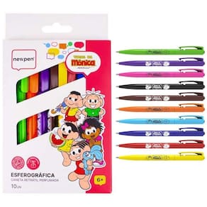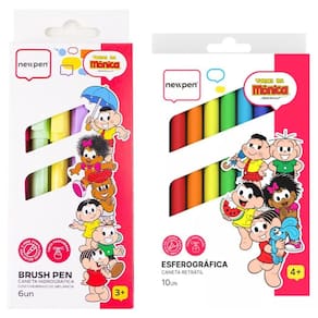 Kit esferográfica + brush pen da turma da mônica - newpen Kit esferográfica + brush pen da turma da mônica - newpen Brush pen turma da mônica perfumada - 6 cores - newpen Para quem ama arte e criatividade, as brush pens perfumadas da turma da mônica são uma explosão de cores e aromas Cada pacote traz 6 canetas , perfeitas para dar vida aos seus desenhos e caligrafias. Com pontas macias e flexíveis, elas permitem traços precisos de 2-4mm, sejam finos ou mais grossos, proporcionando um controle incrível sobre cada detalhe. Além das cores vibrantes, essas canetas exalam um suave perfume de melância, tornando o momento da criação ainda mais prazeroso. Essas canetas são ideais tanto para quem está começando quanto para os mais experientes no mundo das artes. Imagine, por exemplo, a possibilidade de criar uma ilustração com um traço delicado em um momento e, logo em seguida, fazer uma linha firme e marcante, tudo com a mesma ferramenta Além disso, com a qualidade da turma da mônica, que já encanta gerações, a diversão é garantida. Aposte na união perfeita entre arte, diversão e aquele toque especial de fragrância, e transforme qualquer projeto em uma verdadeira obra-prima Inmetro ocp 0116 registro 005 122/ 2022 Caneta esferográfica retrátil turma da mônica perfumada - 10 cores - newpen Kit caneta esferográfica retrátil da turma da mônica com 10 cores vibrantes e perfumadas Com tinta gel liquida que desliza quando você escreve, ponta 0.7mm. Para você usar no estojo, na bolsa, no trabalho, em casa. As canetas da turma da mônica vão encantar várias gerações. Cores: preto, verde claro, laranja, roxo, marrom, amarelo, vermelho, azul, rosa, azul claro. Todas as cores tem um cheirinho único e super especial Contém 10 canetas esferográfica retrátil perfumada turma da mônica newpen. Inmetro ocp 0116 registro 005 338/2022 O kit contem: 1 esferográfica retrátil turma da mônica perfumada 10 cores - newpen 1 brush pen turma da mônica perfumada - 6 cores - newpen