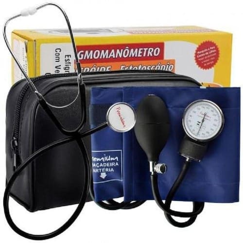 Aparelho de Pressão Esfigmomanômetro Azul com Estetoscópio Simples Mais detalhes do produto: - Para a medição da pressão arterial; - braçadeira com manguito em Pvc; - recomendado para uso doméstico e hospitalar; - acompanha estojo para viagem na cor preta; - verificado e Aprovado pelo Inmetro; - acompanha braçadeira Estetoscópio Simples Premium - garantia 1 ano; - somente com apresentação da nota fiscal de compra, garantia não se aplica para partes sensíveis ao desgaste de uso normal; - estetoscópio na cor preta; - braçadeira na cor azul marinho; - somente com apresentação da nota fiscal de compra, garantia não se aplica para partes sensíveis ao desgaste de uso normal;