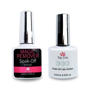 Características Principais Magic Remover: - Remove gel de secagem em cabine; - Não danifica as unhas naturais; - Não possui cheiro forte; - Frasco em forma de esmalte com pincel para dosar a quantidade aplicada; - Garante resultado rápido e eficaz; - Marca: Top Lírio.