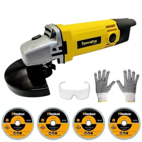 Kit Esmerilhadeira Angular 4.1/2 Titanium + Disco Luva Óculos + Esmerilhadeira Angular 4.1/2 Titanium + 4 Unidades Disco De Corte Fino Super Premium 11,5cm 5047 Titanium + Luva Malha para Pedreiro 3 fios Pigmentada 9 Worker + Óculos De Proteção Sky Wps0206 Para Proteção Deltaplus A Esmerilhadeira Navalha Angular 600W Titanium é uma ferramenta robusta e versátil, ideal para cortes, desbastes e acabamentos em diferentes materiais, como metais, concreto e alvenaria. Com seu motor potente de 600W, ela garante eficiência em trabalhos de serralheria, construção civil e até projetos DIY faça você mesmo . O design ergonômico proporciona conforto e segurança ao usuário, permitindo longos períodos de trabalho sem fadiga. Benefícios: - Ergonomia: leve e fácil de manusear, a esmerilhadeira conta com um punho auxiliar que oferece maior controle e conforto durante o uso. Versatilidade: ideal para cortes, desbastes e acabamentos em diversos materiais. - Durabilidade: fabricada com materiais de alta qualidade, projetada para durar mesmo em condições de uso intensivo. Segurança: equipada com capa de proteção para evitar acidentes durante o manuseio. - Este produto é perfeito para profissionais que trabalham com construção civil, metalurgia, ou para quem realiza serviços domésticos com frequência. A Esmerilhadeira Navalha Angular 600W - Titanium oferece precisão, potência e segurança, sendo uma excelente escolha para suas atividades Recomendações de Uso: - Segurança: Utilize sempre os Equipamentos de Proteção Individual EPIs como óculos, protetor auricular e luvas ao operar a esmerilhadeira. - Manutenção: Limpe regularmente e verifique o estado do disco de corte para manter o bom desempenho da ferramenta. - Armazenamento: Guarde a esmerilhadeira em local seco e arejado, protegida de umidade para prolongar sua durabilidade. Marca: Titanium Modelo: 08254 110V/220 08255 220V Capacidade do disco: 4.1/2 115mm Potência: 600W Rotação: 9.500 RPM + Disco De Corte Fino Super Premium 11,5cm 5047 Titanium Características: - Disco de corte fino, com baixa espessura e reforçados com telas de fibra de vidro - Proporciona um excelente rendimento nas operações de corte, devido a sua espessura mais fina que os discos de corte normais - Rende até 80% mais que o disco de corte convencional Especificações: - Marca: Titanium - Modelo: 5047 - Dimensões DxA : 11,5 x 0,1 cm - Peso: 1,10 Kg - Material: Aço Inox - RPM Máximo: 13.300 + Luva Malha para Pedreiro 3 fios Pigmentada 9 Worker Características: Luva tricotada em fios de algodão, reversível, com punho de elástico. 3 fios. Indicada para proteção das mãos contra sujeira, ajuda na proteção contra o frio e onde haja necessidade de maior mobilidade e tato. Especificações técnicas Marca: Worker Modelo: WK- LTB3P - 3 Fios Tamanho: 9 G Dimensões: Altura: 4cm Largura: 12cm Comprimento: 12cm Peso: 55g + Óculos De Proteção Sky Wps0206 Para Proteção Deltaplus Características Os óculos de proteção SKY CLEAR da DELTA PLUS combinam estilo e segurança. Sua isenta de partes metálicas possibilita o uso em trabalhos com eletricidade. Suas hastes tipo espátula com abertura na ponta permitem a colocação de cordão. Oferecem proteção: UV400 que filtram 99,9% dos raios UVA/UVB até 380 nm, alto impacto e lateral. Vantagens - Proteção - UV400: Filtram 99,9% dos raios UVA/UVB até 380 nm - Resistente a alto impacto - Lateral - 0% metal - Isenta de partes metálicas - Hastes com abertura - Permitem a colocação de cordão Especificações técnicas - Marca: Deltaplus - Modelo: WPS0206 - Dimensões do produto - Altura: 5 cm - Largura: 6 cm - Comprimento: 15 cm - Peso: 27 g CONTEÚDO DA EMBALAGEM: 4 - Discos De Corte Fino Super Premium 1 - Par de Luvas 1 - Esmerilhadeira 1 - Óculos 1 - Capa de metal 115mm 1 - Punho auxiliar 1 - Chave de fixação