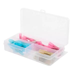 10x BHT0.5x10 (para fios de 0,5mm²) 40x BHT1.25x40 (para fios de 1,25mm²) 10x BHT2x10 (para fios de 2mm²) 5x BHT5x5 (para fios de 5mm²) 1x Caixa organizadora plástica com divisórias
